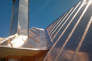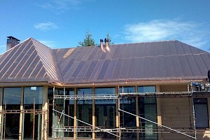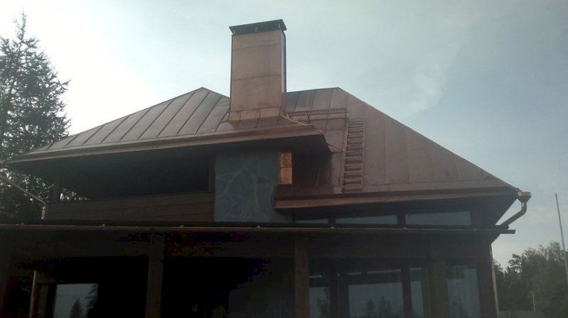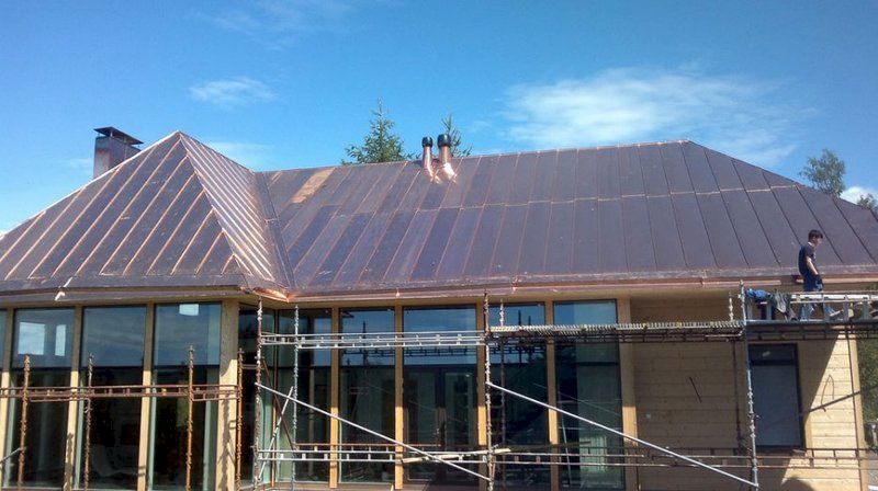 Uudiskohteen kuparikatto sekä kupariset kattovarusteet.